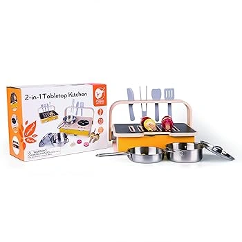 This 2-in-1 tabletop kitchen comes with 23 different pieces including utensils, saucepans and pretend food. Flick the small switch and a glowing red will show underneath the table tops. Encouraging creativity through pretend play and stimulating fine motor skills, your little one will become the perfect chef with this kitchen! Transfer the utensil holder to a handle and you can store and transport this kitchen – a perfect toy for families always on the go!