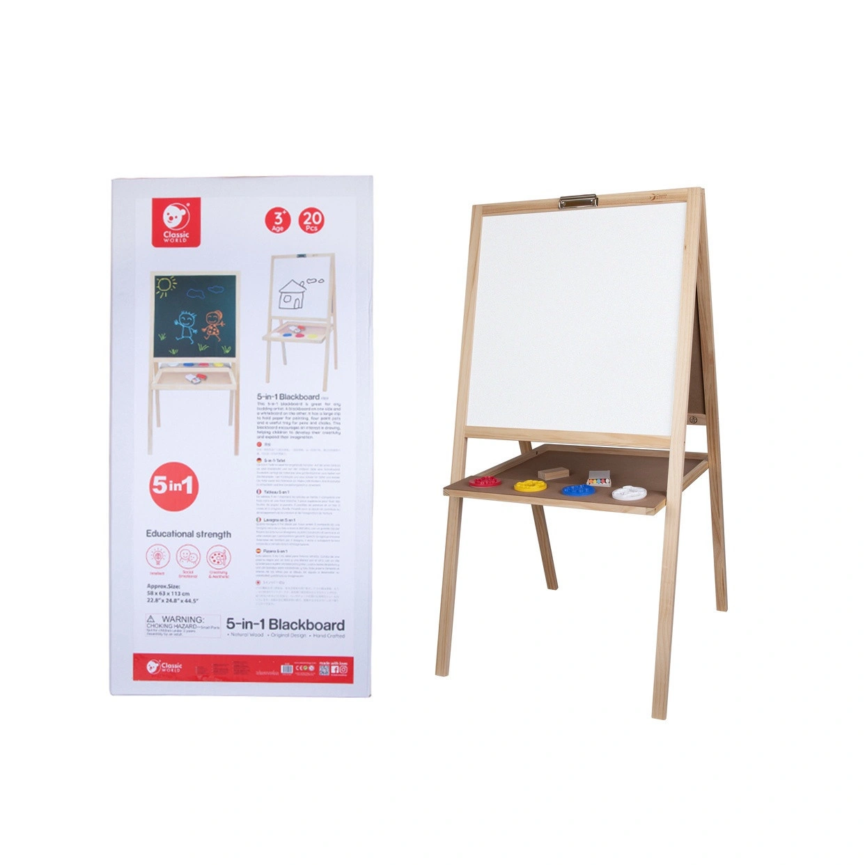 This 5 in 1 blackboard is great for any budding artist. It's a blackboard on one side, a white board on the other and it has a large clip to hold paper for painting, four containers for paint and a useful tray to hold pens and chalk.
