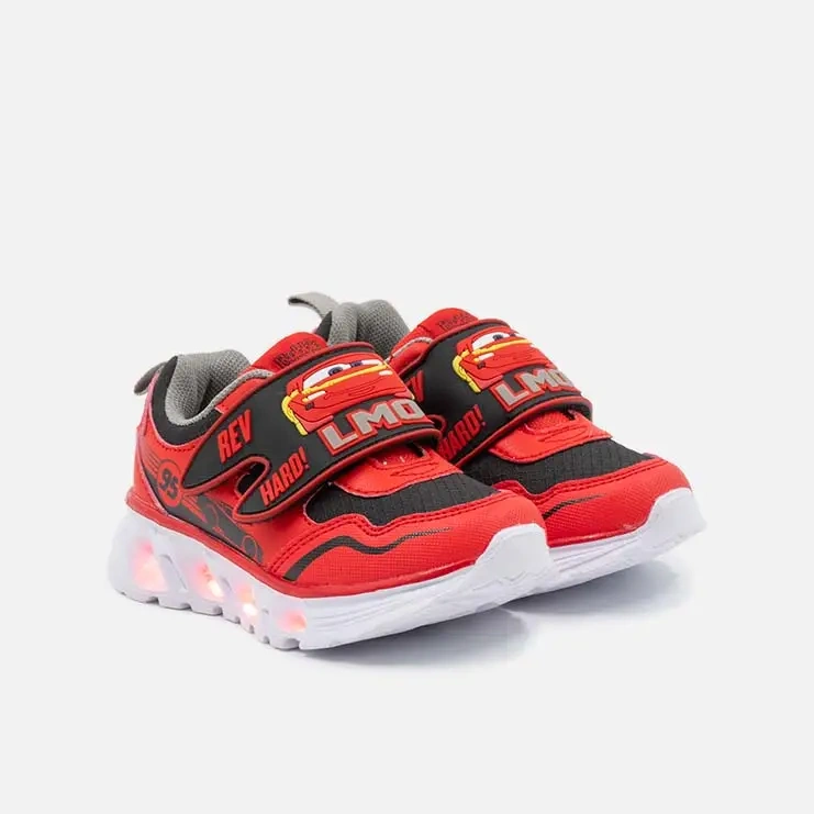 Bring speed and excitement to every step with these Lightning McQueen Light-Up Kids Shoes, inspired by the famous Cars character kids love. Designed with built-in LED lights, these shoes light up while walking, making playtime even more fun and engaging.