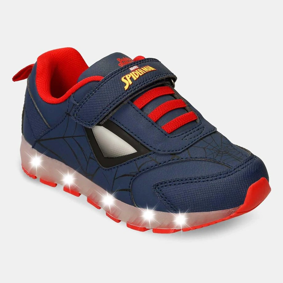 Swing into action with the Marvel Spider-Man Light-Up Sneakers. These high-performance athletic shoes are designed for little heroes who need speed, comfort, and a bit of web-slinging style. Featuring a bold navy and red colorway with iconic Spider-Man graphics, these sneakers light up with every step, making playtime an epic adventure.