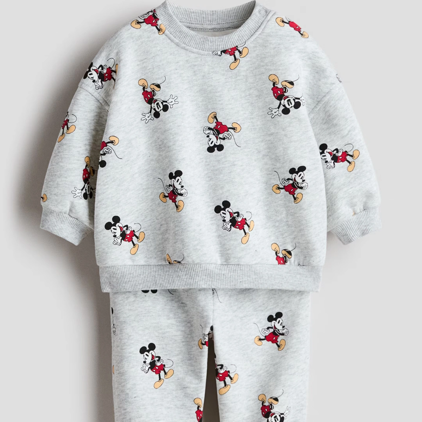 Set with a sweatshirt and sweatpant joggers, both with a printed design and soft, brushed inside. Sweatshirt with a round neck with snap fasteners at one side (sizes 2–4Y without snap fasteners), dropped shoulders, and ribbing at neck, cuffs, and hem. Joggers with adjustable elastic and a decorative drawstring at waistband, and covered elastic at hems.