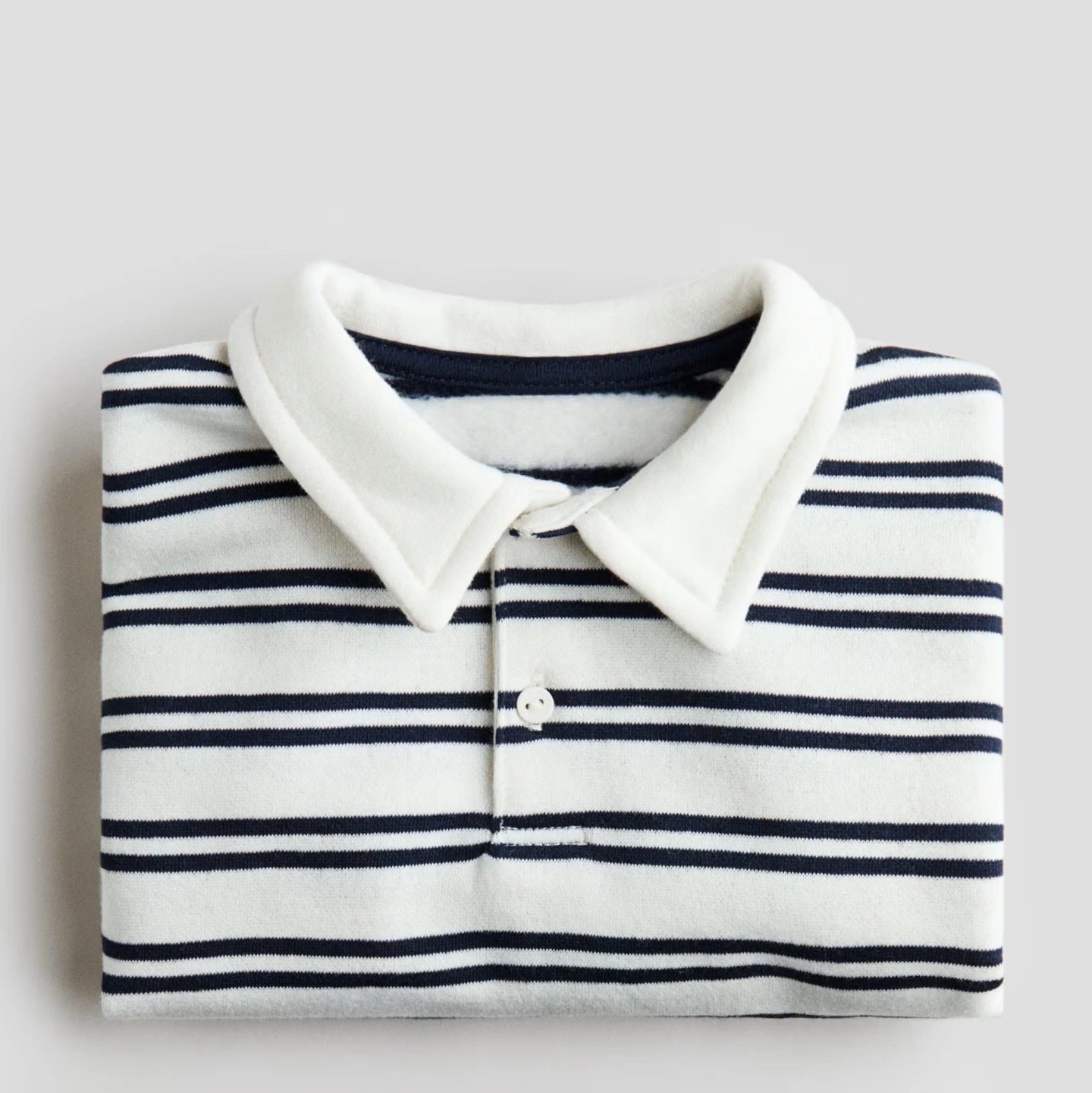 Set with a rugby shirt and pair of joggers in sweatshirt fabric with a soft brushed inside. Shirt with a collar, button placket, dropped shoulders and long sleeves. Ribbed trims at the cuffs and hem. Joggers with an adjustable, elasticated waist detailed with a decorative drawstring, and ribbed trims at the hems.
