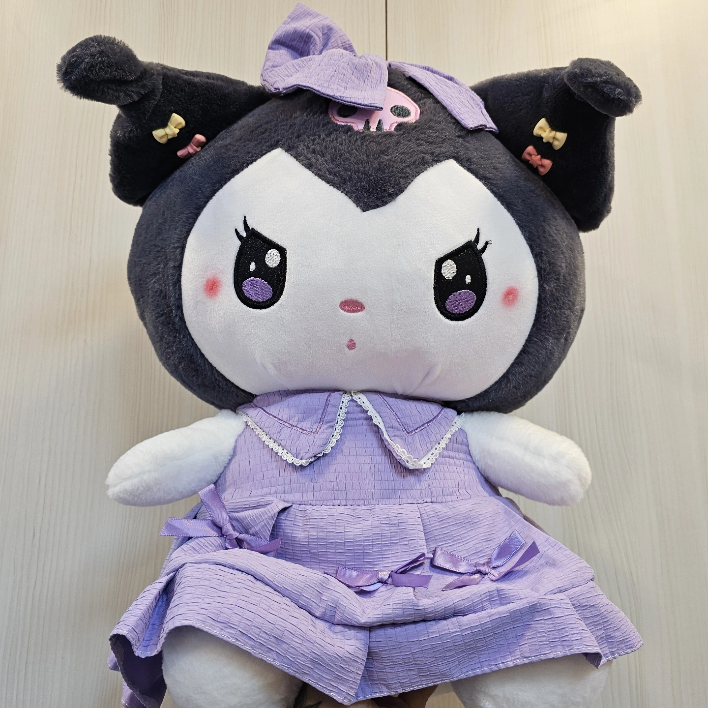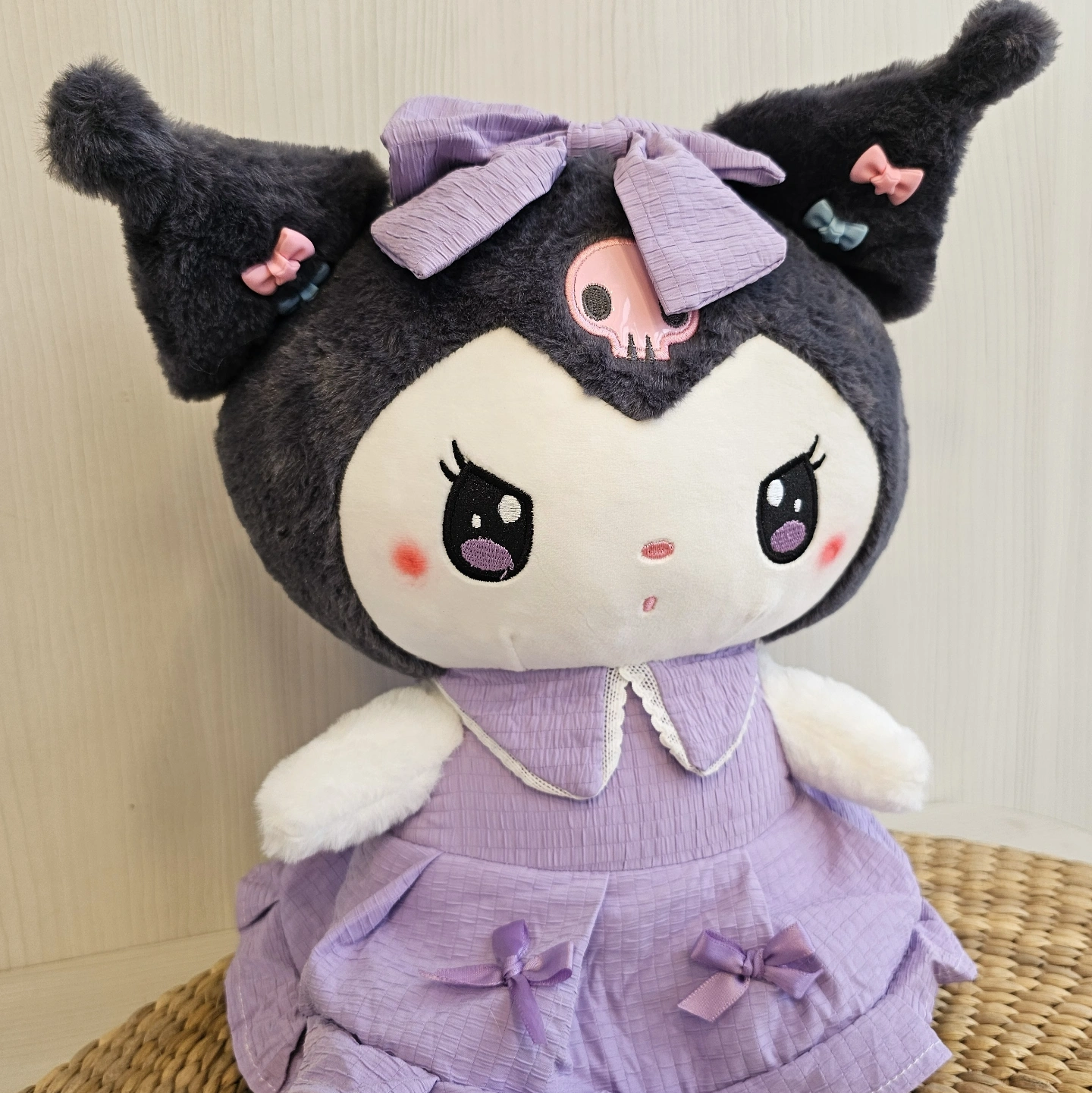 This adorable Kuromi-inspired plush comes dressed in a soft lavender outfit with delicate bow details. Made from ultra-plush, cuddly fabric, she’s perfect for hugs, display, or gifting. With her sweet embroidered face and pastel charm, she’s a lovely companion for fans and little ones alike.