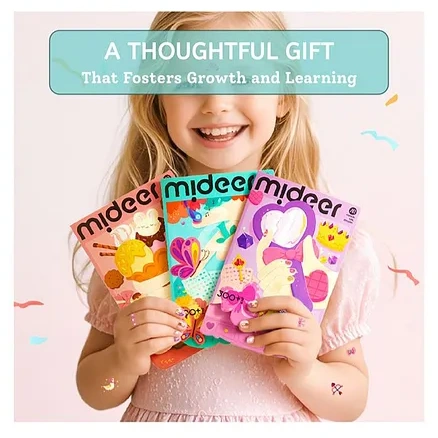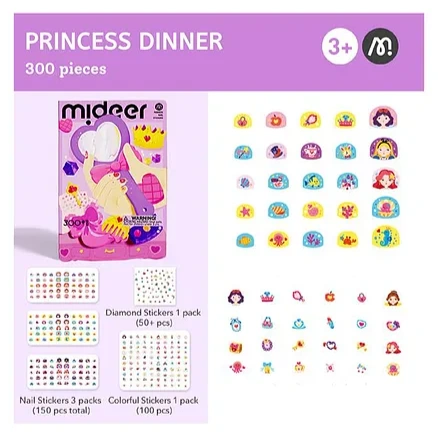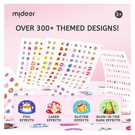 Let your child's creativity shine with Mideer Nail Stickers! This set includes 300 colorful nail stickers across 4 stunning styles: glitter effect, glow in the dark, laser effect, and diamond effect. Perfect for kids who love to experiment with fun, vibrant designs. These stickers are easy to peel and apply, leaving no glue residue behind. Crafted with durable, sweat-proof, and water-resistant material, they ensure long-lasting fun through every activity. The thick material and smooth, rounded edges make them safe and gentle for kids to use. Packaged in premium, gift-ready packaging, the set is a thoughtful and exciting gift for birthdays, holidays, or any special occasion. Whether for a creative playdate or everyday fun, Mideer Nail Stickers are the perfect way to add sparkle and style to little hands!