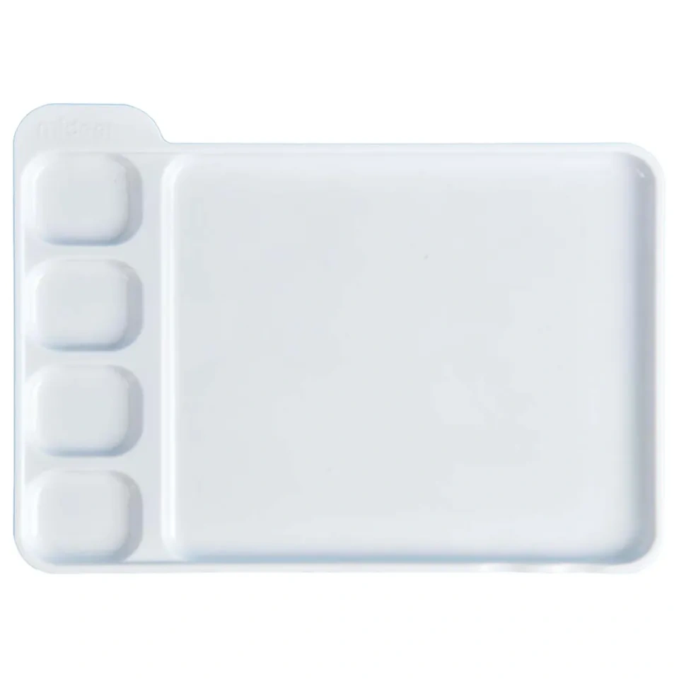 Discover the joy of painting with the Mideer Plastic Palette, a perfect companion for young artists! This sturdy palette is thoughtfully designed to make color mixing and dilution easy and enjoyable. Featuring 4 small wells for blending an array of colors and a larger central well specifically for diluting paints, it provides all the space needed for creative expression. Its compact size ensures it's perfectly suited for small hands, offering effortless handling and a comfortable grip for kids as they explore their artistic talents.