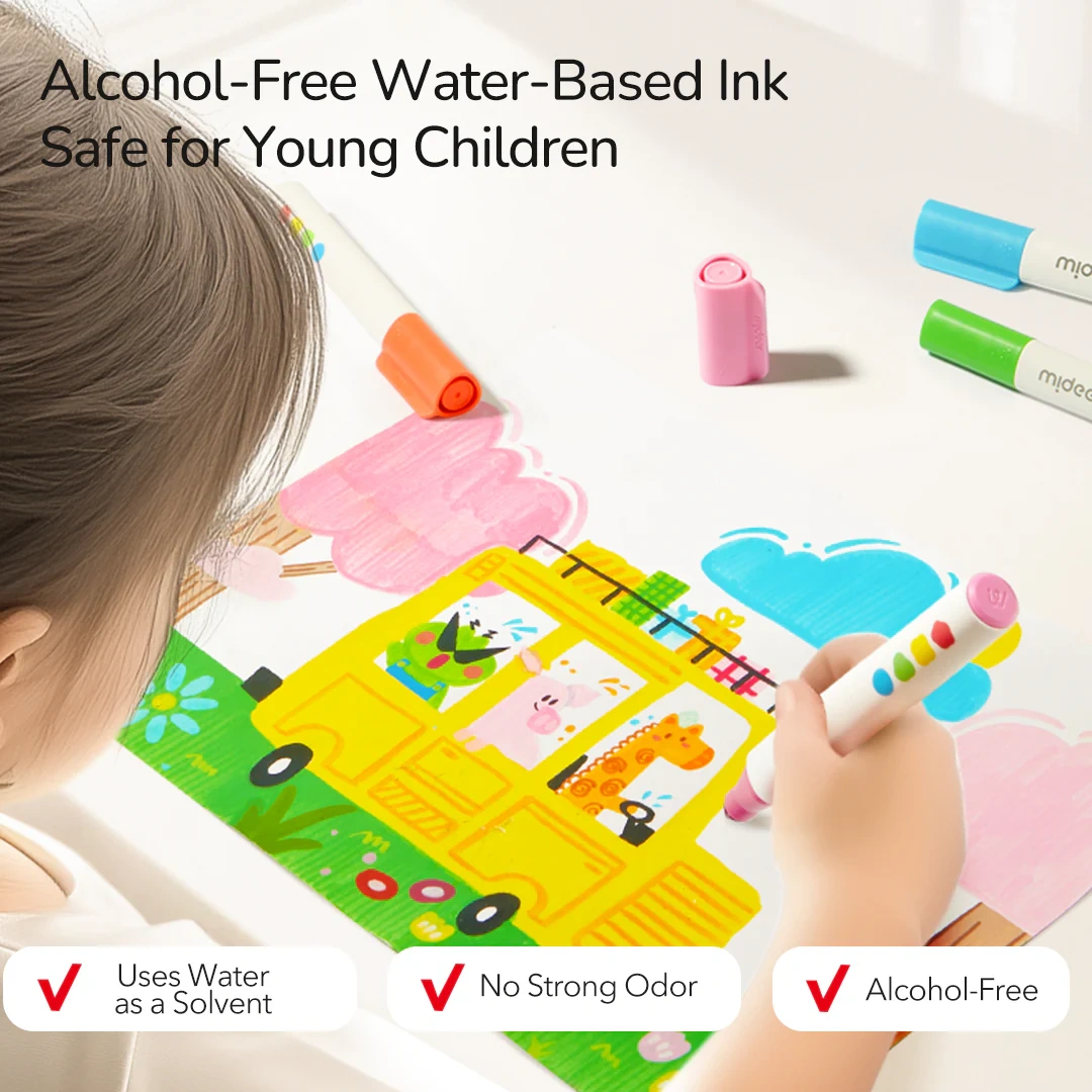 Safe for Young Children: Alcohol-free and water-based ink makes these markers completely safe, even for toddlers.
