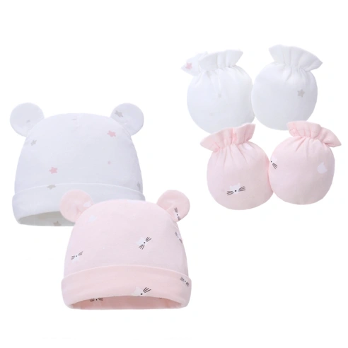 Coordinated 2-Piece Set: Includes one soft newborn beanie and a matching pair of no-scratch mittens for a complete, put-together look.