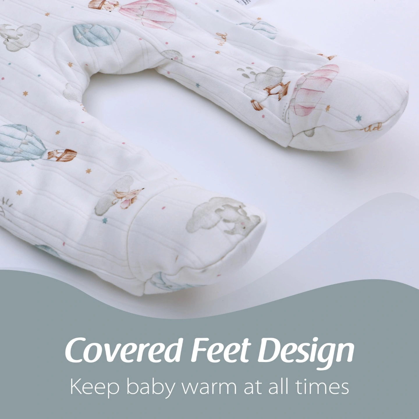 The full-body covered design helps protect your baby from cold air, making it perfect for winter sleep, indoor wear, and outings. Its soft texture is safe for delicate newborn skin, while the comfortable fit allows easy movement and uninterrupted sleep.