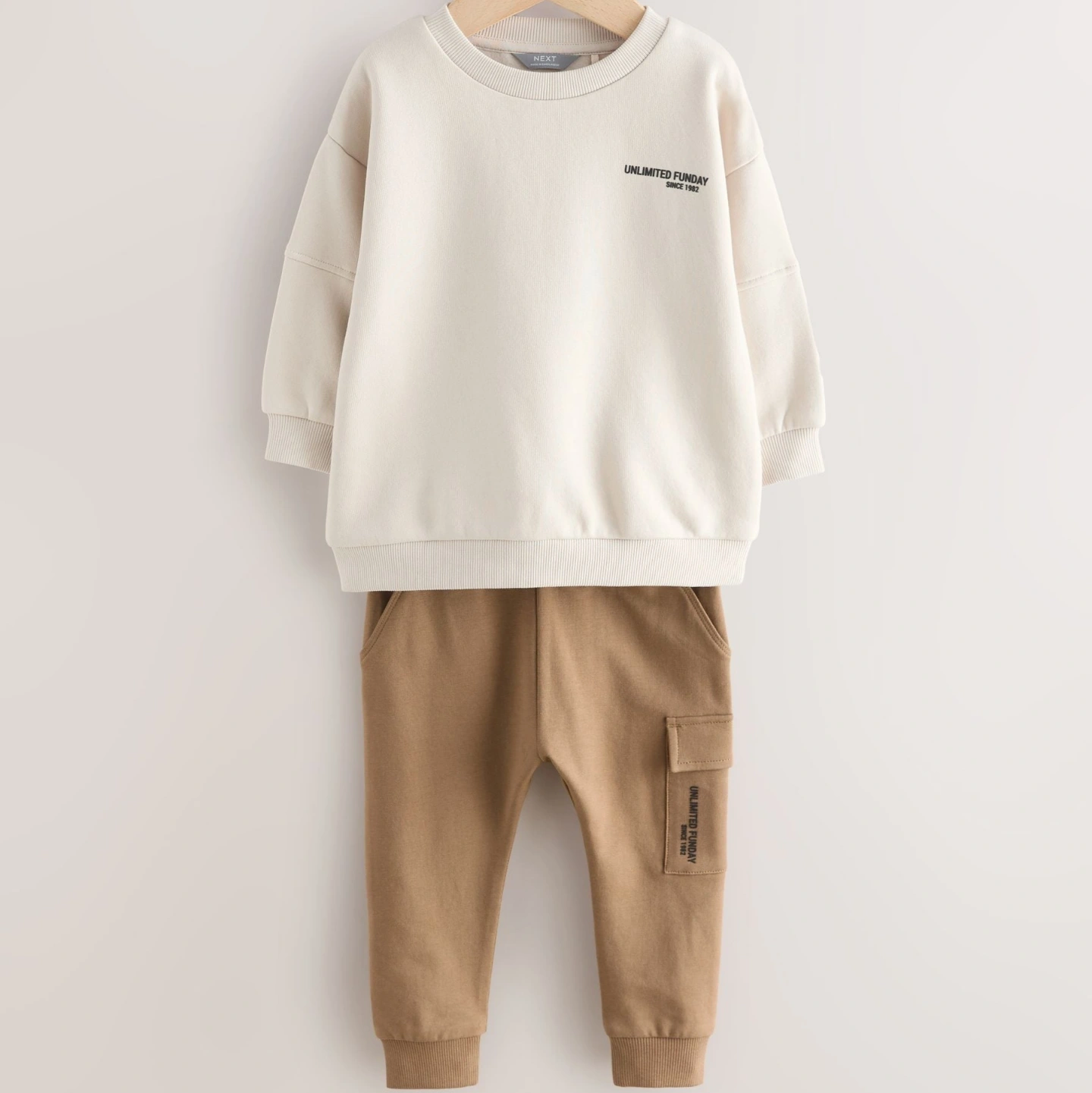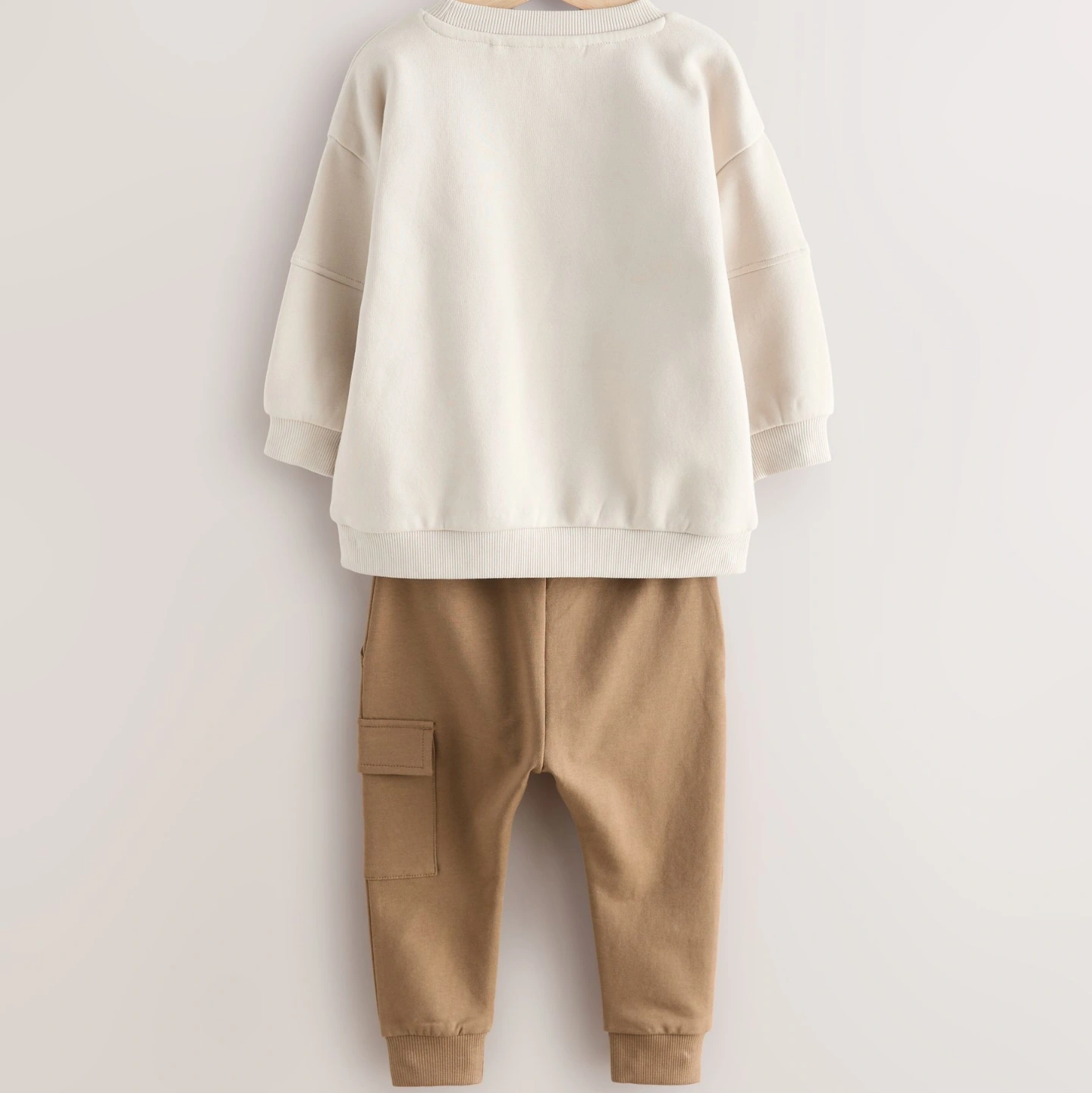 Upgrade his rotation with our Ecru Off White utility sweatshirt and super skinny joggers set. In a cotton rich blend, this stylish set includes a grey long sleeve sweatshirt and khaki skinny fit joggers.