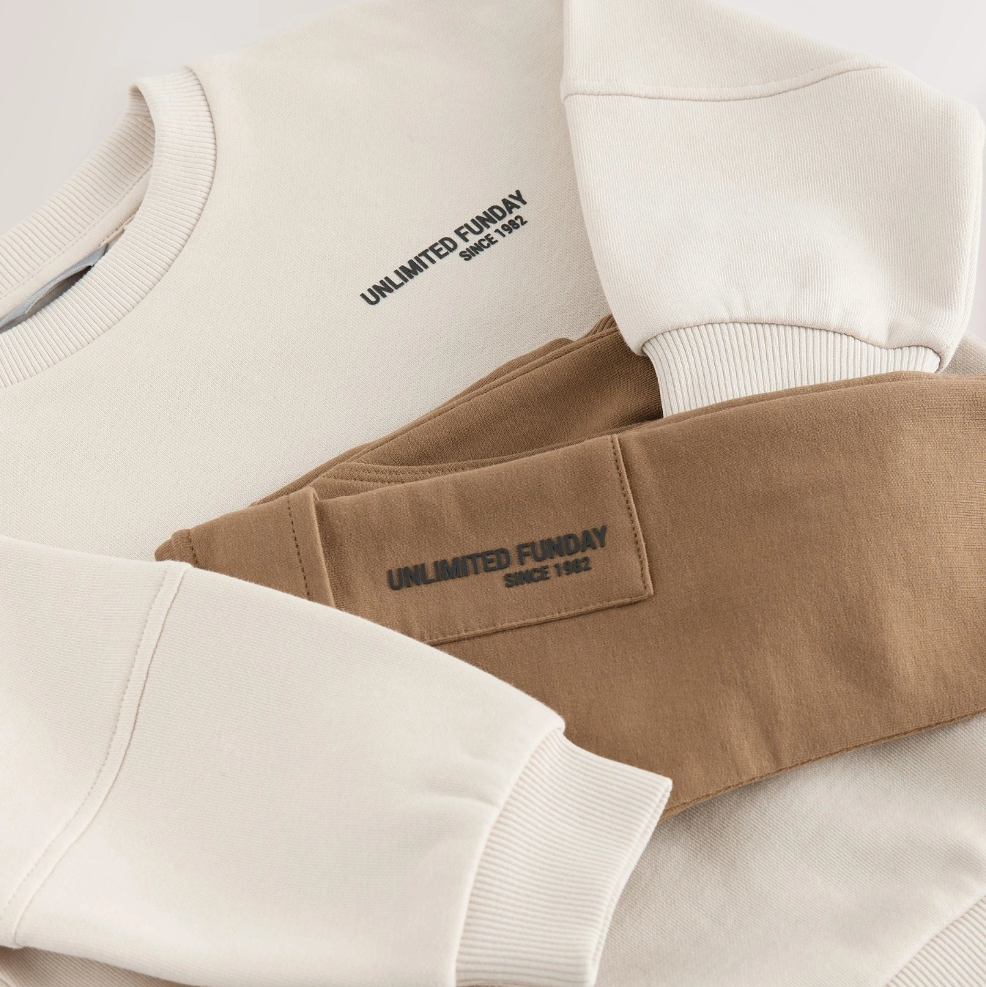 Sweater 80% Cotton, 20% Recycled polyester. Jogger 95% Cotton, 5% Elastane.