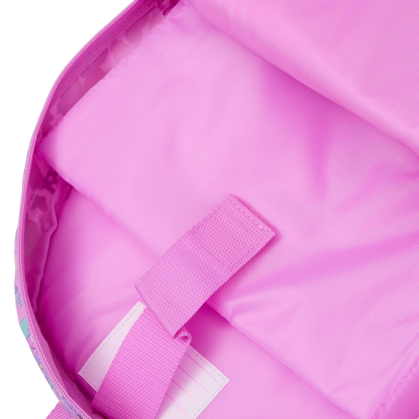 Internal name label and slip pocket